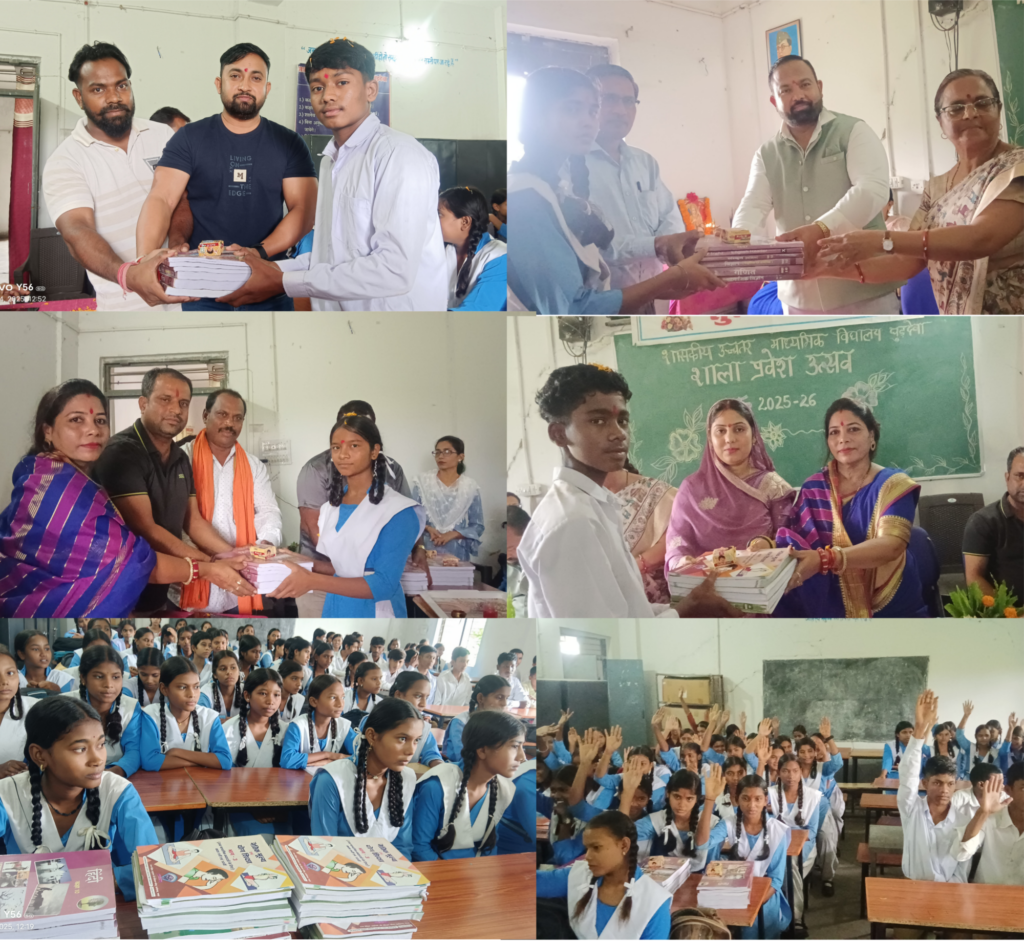 छत्तीसगढ़/कोरबा जिले के नगर पालिका परिषद बांकीमोंगरा अन्तर्गत घुड़देवा शासकीय हाईस्कूल में नव प्रवेश बच्चों को तिलक लगाकर व पुस्तक वितरण कर शाला प्रवेश उत्सव मनाया गया । इस अवसर पर नगर पालिका परिषद बांकीमोंगरा के अध्यक्ष श्रीमती सोनी कुमारी झा मुख्य अतिथि के रुप में उपस्थित रहे ‌। कार्यक्रम की शुरुआत मुख्य अतिथि व अतिथियों के द्वारा मां सरस्वती जी के छायाचित्र पर माल्यार्पण व दीप प्रज्ज्वलित कर किया गया , इस दौरान स्कूल के छात्राओं के द्वारा सरस्वती वंदना का गायन किया गया । शाला प्रवेश उत्सव कार्यक्रम में मुख्य अतिथि पालिका अध्यक्ष श्रीमती सोनी कुमारी झा के साथ , अति विशिष्ट अतिथि भाजयुमो छत्तीसगढ़ प्रदेश कोषाध्यक्ष विकास झा , अतिथि पार्षद अश्वनी कुमार मिश्रा , भाजपा महिला मोर्चा महामंत्री श्रीमती अनिता राजपूत , शाला समिति के अध्यक्ष आशा राम केंवट , युवा मोर्चा नेता प्रकाश झा , अनुपम दास , पत्रकार विकास सोनी शामिल हुए । जहां मुख्य अतिथि व अन्य अतिथियों के द्वारा नव प्रवेश बच्चों को तिलक लगाकर व पुस्तक वितरण कर उनका स्वागत किया गया । साथ ही कक्षा 10-12वीं , विद्यालय में टॉप करने वाले बच्चों को प्रस्तति पत्र देकर सम्मानित किया गया । कार्यक्रम में उपस्थित मुख्य अतिथि व अतिथियों के द्वारा अपने-अपने उद्बोधन में पढ़ाई के महत्व पर प्रकाश डालते हुए बच्चों को प्रतिदिन विद्यालय आकर शिक्षा ग्रहण करने की बात कही ।