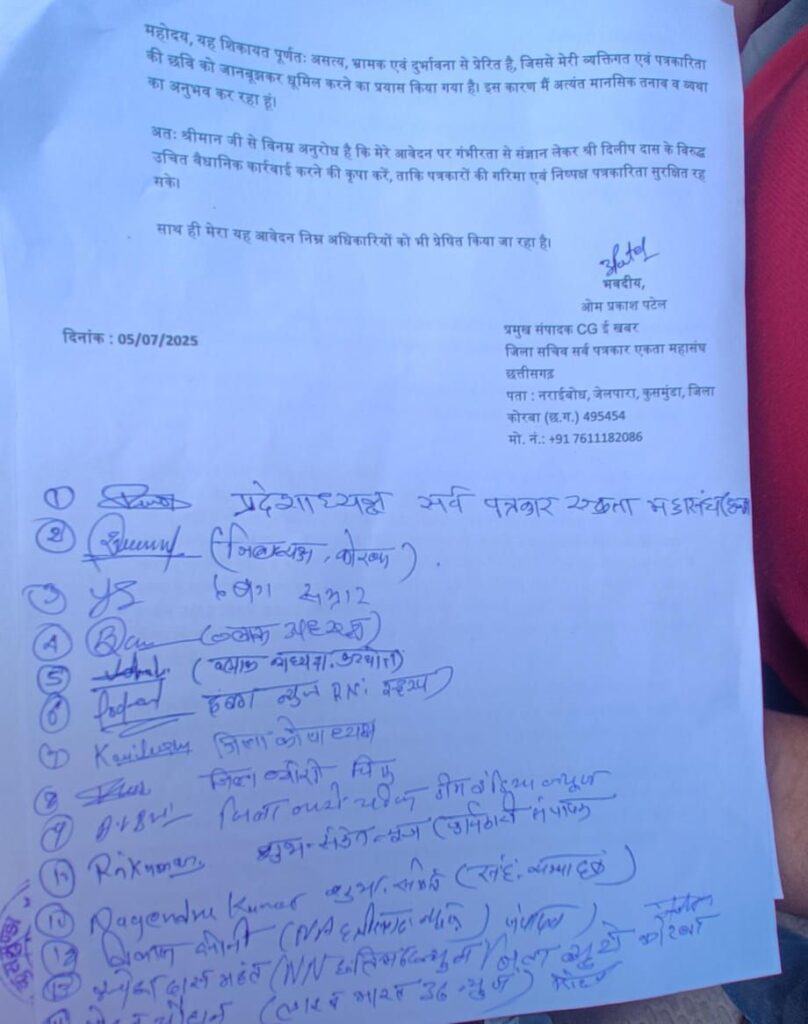 पत्रकारों पर झूठा आरोप लगाने वाले भाजपा पार्षद दिलीप दास के खिलाफ पत्रकारों ने कुसमुंडा थाने में की शिकायत, कानूनी कार्रवाई की मांग ।