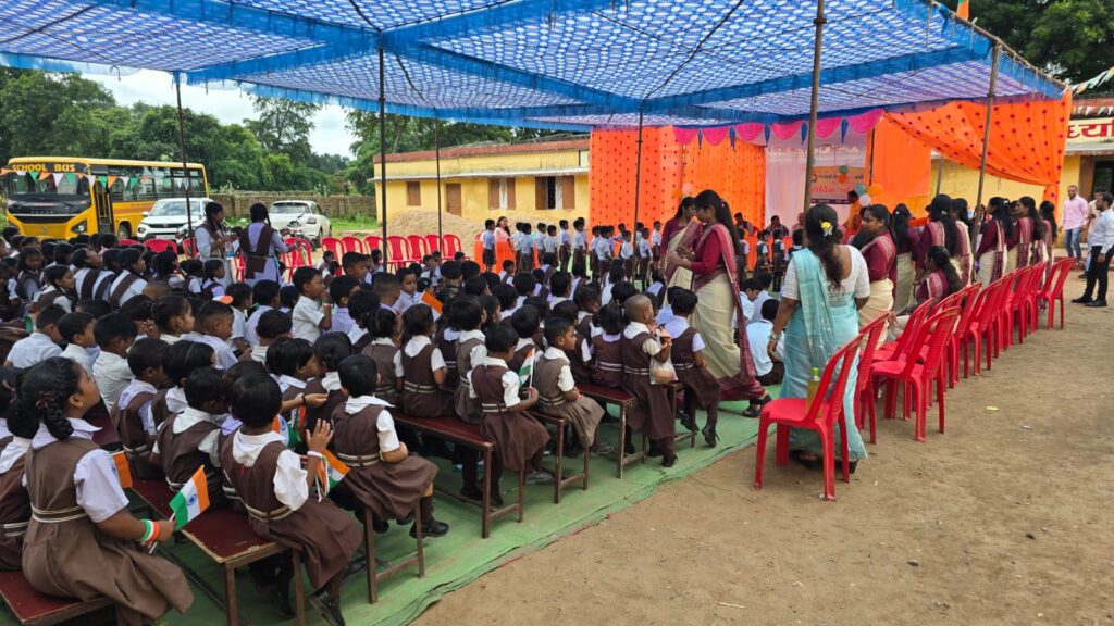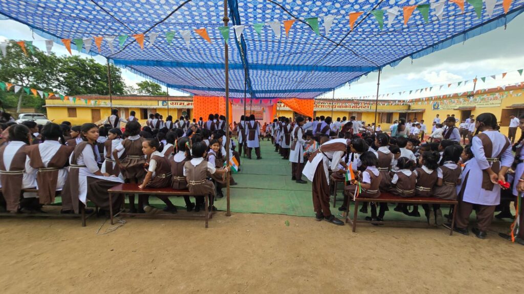 ग्राम भारती सरस्वती शिशु मंदिर उ.मा. विद्यालय बांकीमोंगरा में हर्षोल्लास के फहराया गया तिरंगा झंडा ।