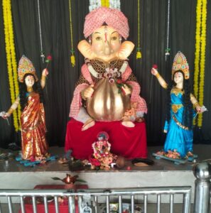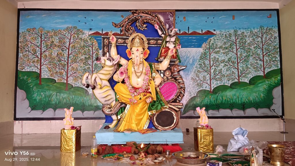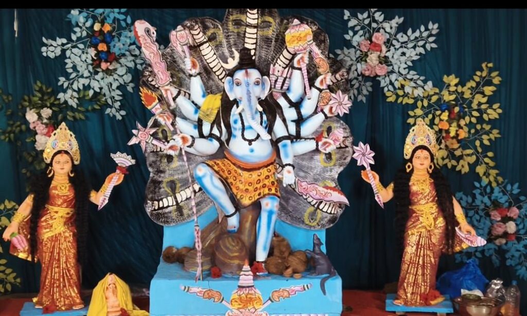 देखे बच्चों के द्वारा तैयार किए गये गणेश जी का विशाल मुर्ति ।