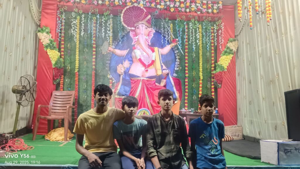 छत्तीसगढ़/कोरबा जिले के नगर पालिका परिषद बांकीमोंगरा अन्तर्गत वार्ड क्रमांक 05 मनोरंजन मंदिर क्लब के पीछे लाईन में छोटे-छोटे बच्चों के द्वारा गणेश जी का मुर्ति स्थापित किये है जिसे देख कॉलोनीवासी सहित आसपास के लोग देखते पहुंच रहे हैं और बच्चों के प्रति प्रसंशा कर रहे हैं। आपकों बंता पिछले एक माह से कॉलोनी के छोटे-छोटे बच्चे आयूष शर्मा , प्रियांशु राज , वासू शर्मा , यशवर्धन श्रीवास, राजवर्धन श्रीवास एवं हिमांशु राज शर्मा इन बच्चों ने मिलकर लगभग 7 से 8 फिट का गणेश जी का मुर्ति अपने खुद हाथों से तैयार कर गणेश चतुर्थी के अवसर पर स्थापित किये है । जहां विधि-विधान से पूजा अर्चना कर लगातार गणेश जी का सेवा कर रहे हैं। बच्चों का मेहनत देख कॉलोनीवासियों व मनोरंजन मंदिर क्लब के युवाओं के द्वारा गणेश जी का पंडाल की व्यवस्था मिलकर किये है। बच्चों ने बताया कि गणेश जी का मुर्ति सुमेधा नदी से मिट्टी लाकर तैयार किये है।