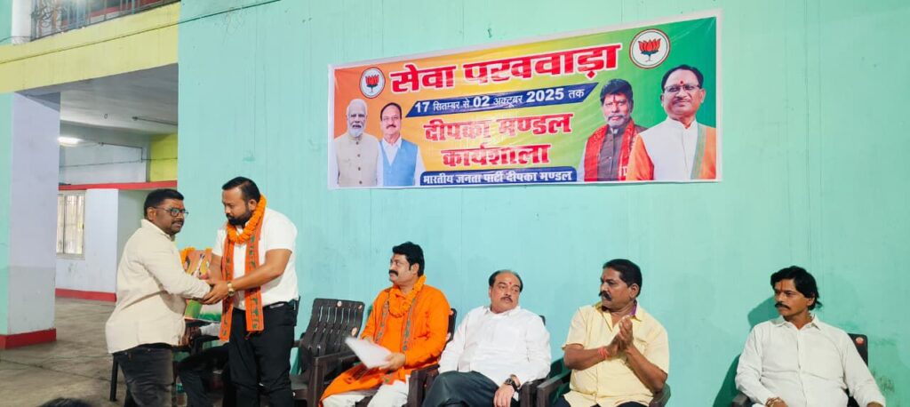 छत्तीसगढ़/कोरबा भारतीय जनता पार्टी राष्ट्रीय एवं प्रदेश नेतृत्व तथा जिला संगठन के निर्देशानुसार 17 सितंबर से 2 अक्टूबर तक आयोजित होने वाले सेवा पखवाड़ा कार्यक्रम को लेकर दीपका मंडल स्तर पर कार्यशाला का आयोजन किया गया। यह कार्यशाला दीपका के संस्कृति भवन में मंडल अध्यक्ष राजू प्रजापति की अध्यक्षता में संपन्न हुई।
