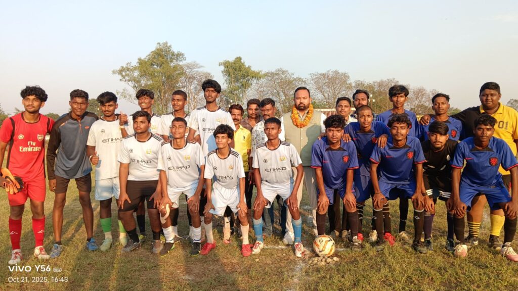 बांकीमोंगरा के घुड़देवा में फुटबॉल प्रतियोगिता का समापन करने मुख्य अतिथि के रुप में पहुंचे विकास झा, खिलाड़ियों को दिया जीत का मंत्र।