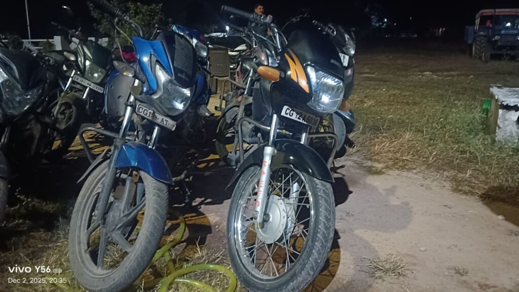 पुलिस ने मौके से लगभग 10 मोटरसाइकिलें जप्त की है, जप्त की गई बाईकों की संख्या – CG-12-BD- 1362