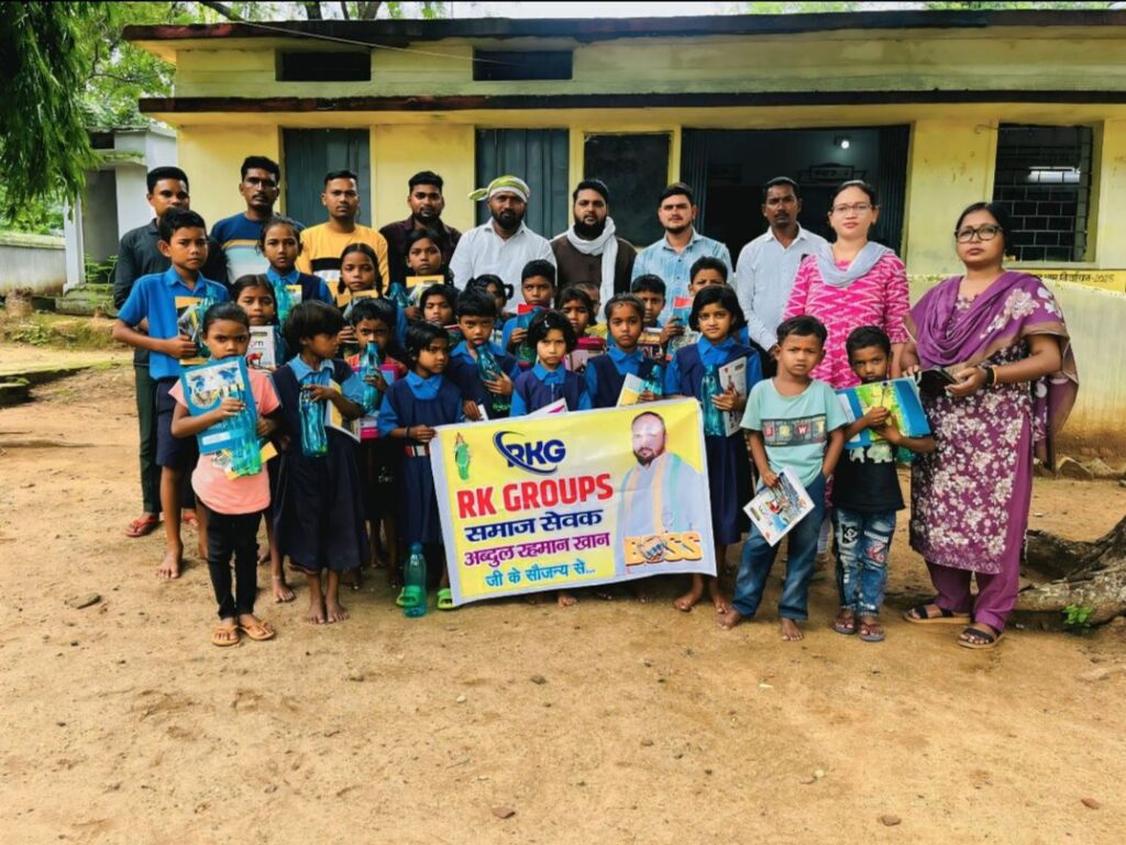 घनाकछार स्कूल में प्रवेश उत्सव, बच्चों को आरके ग्रुप ने बांटी गई पानी बाॅटल, कॉपी, पेन व किताब ।